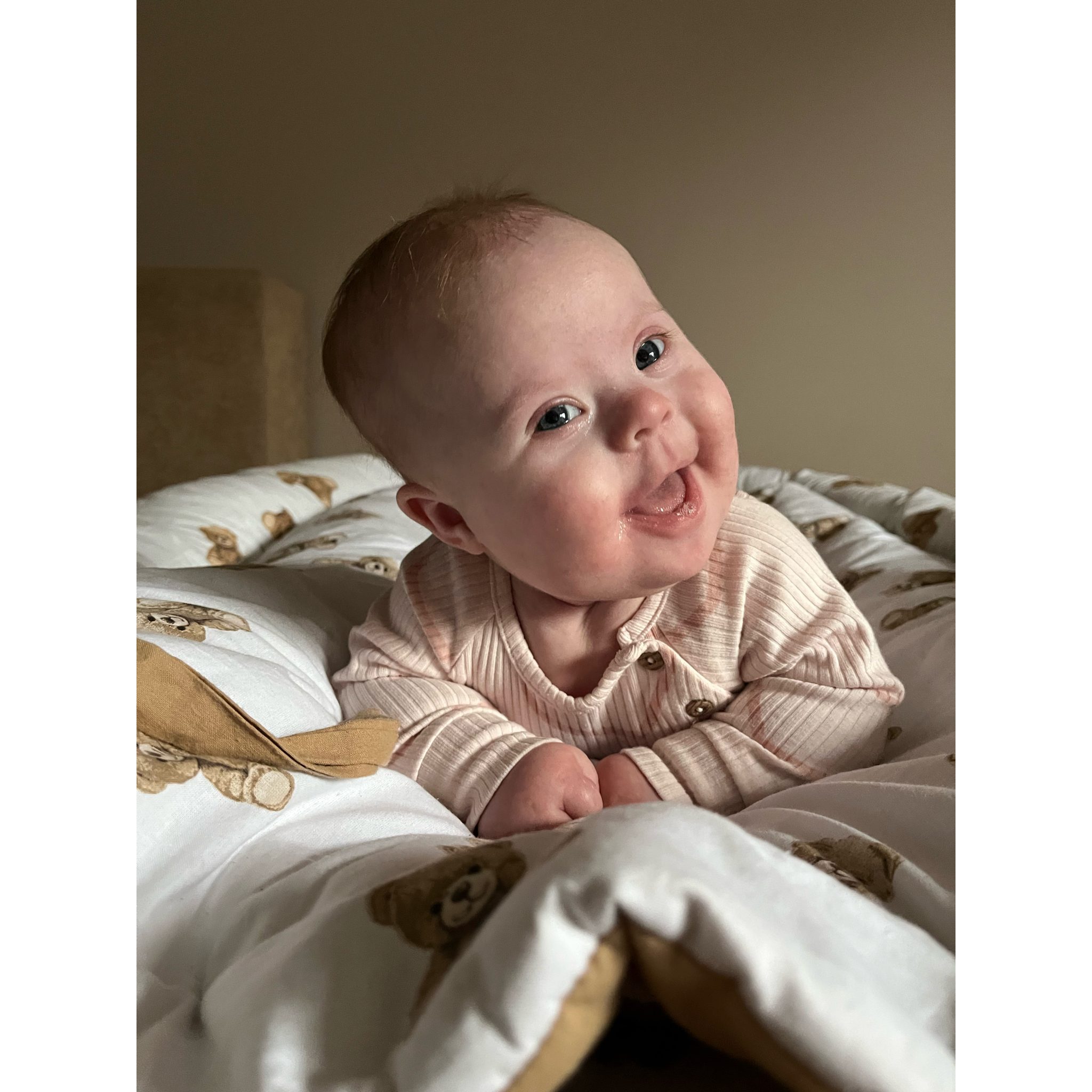 Jest bardzo pogodną i uśmiechniętą dziewczynką. Codziennie zadziwia nas swoją siłą i pogodą ducha. Śmiechem zaraża wszystkich.