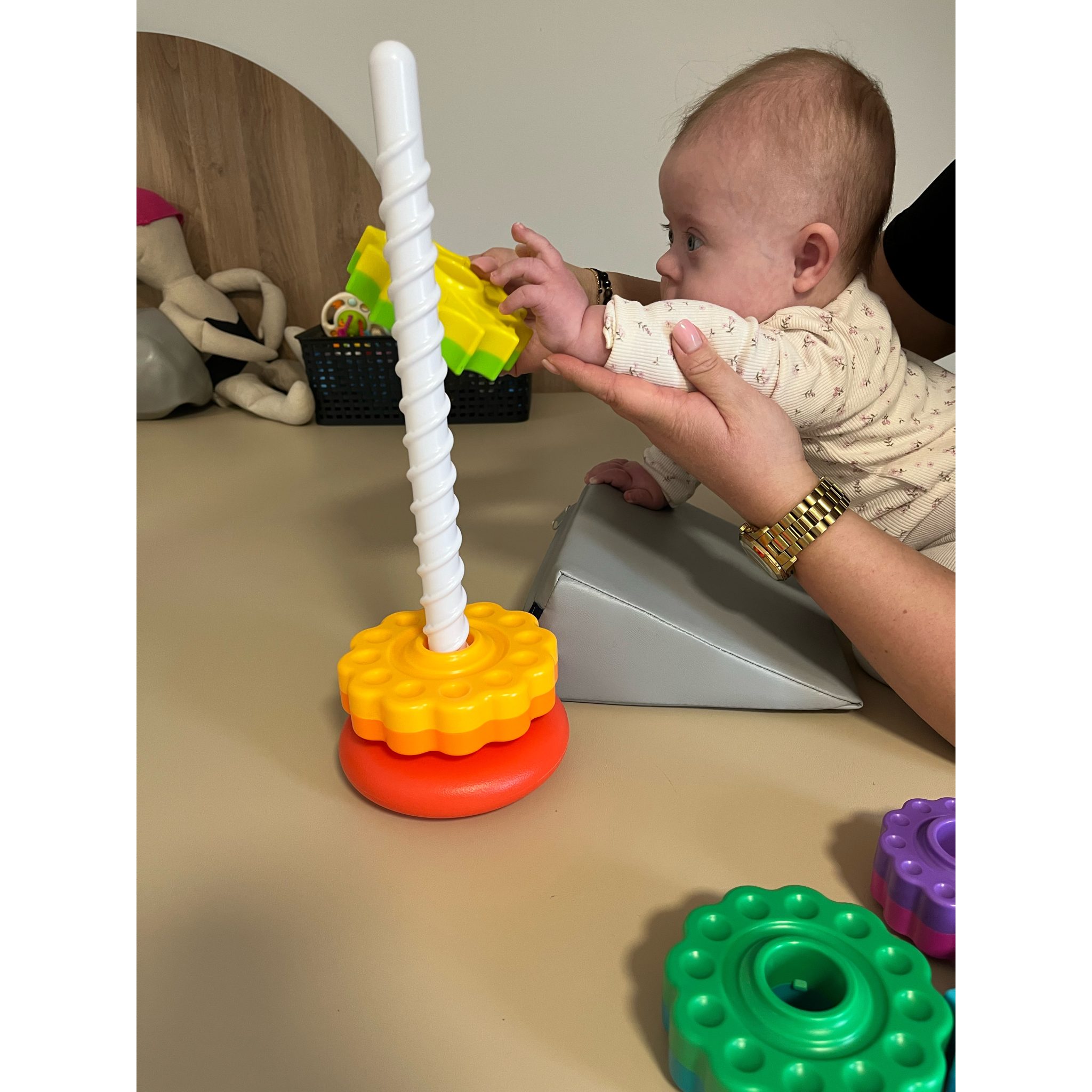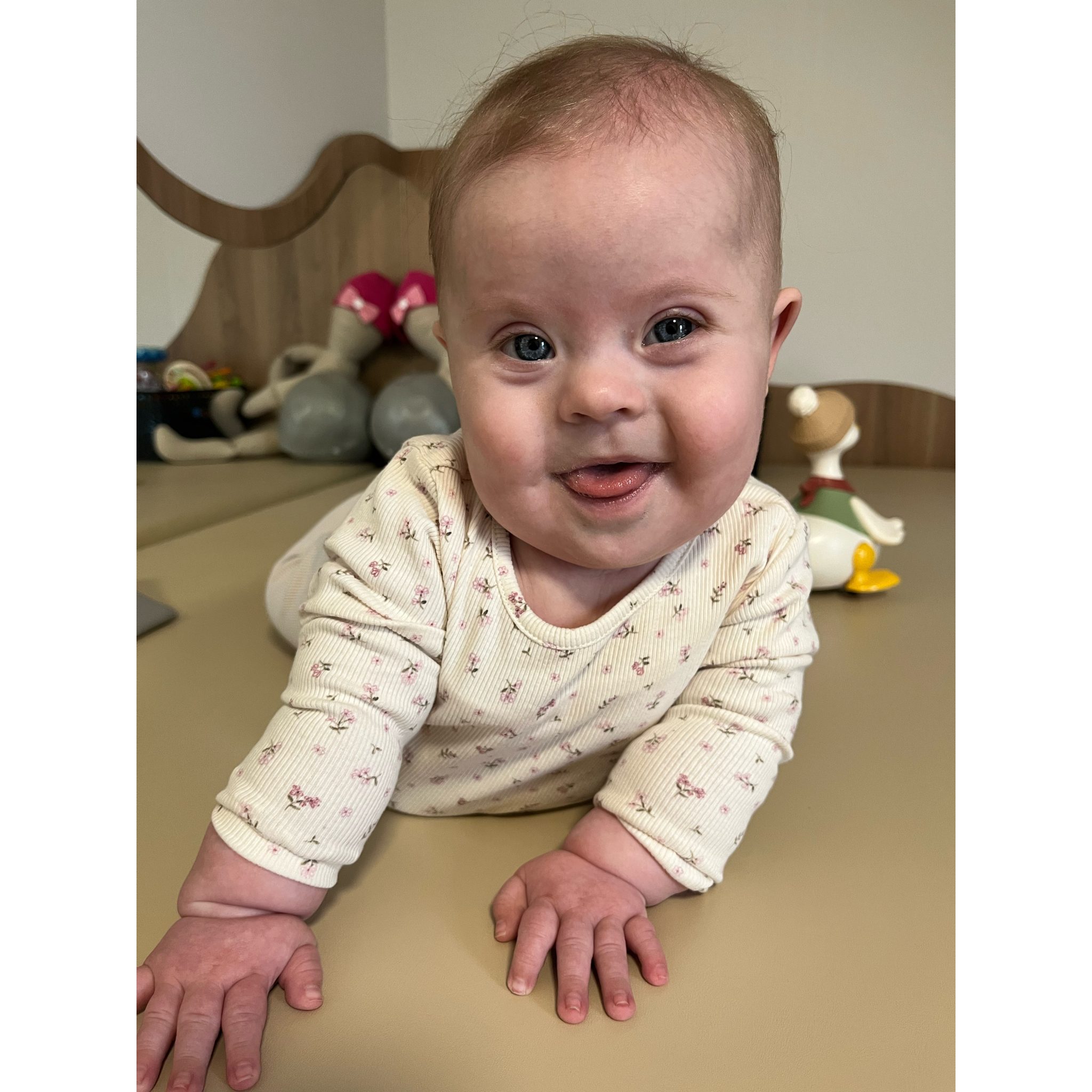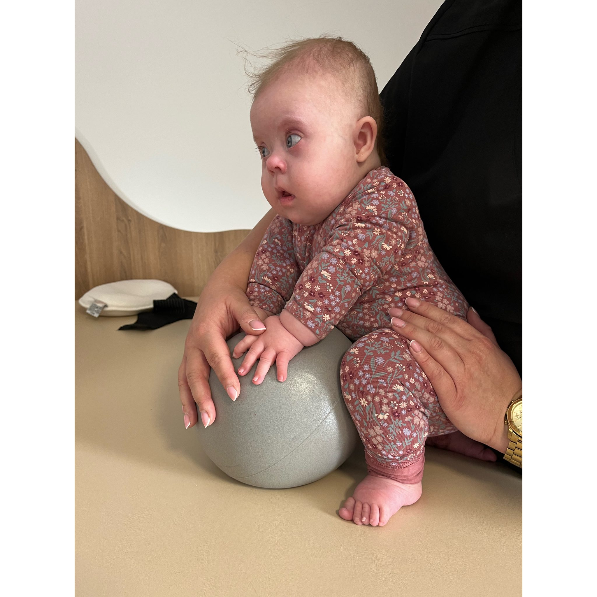 Zuzia ma obniżone napięcie mięśniowe i przez to bardzo ważna dla niej jest rehabilitacja. Musi regularnie uczęszczać, żeby móc prawidłowo funkcjonować. Jest bardzo dzielnym maluszkiem!