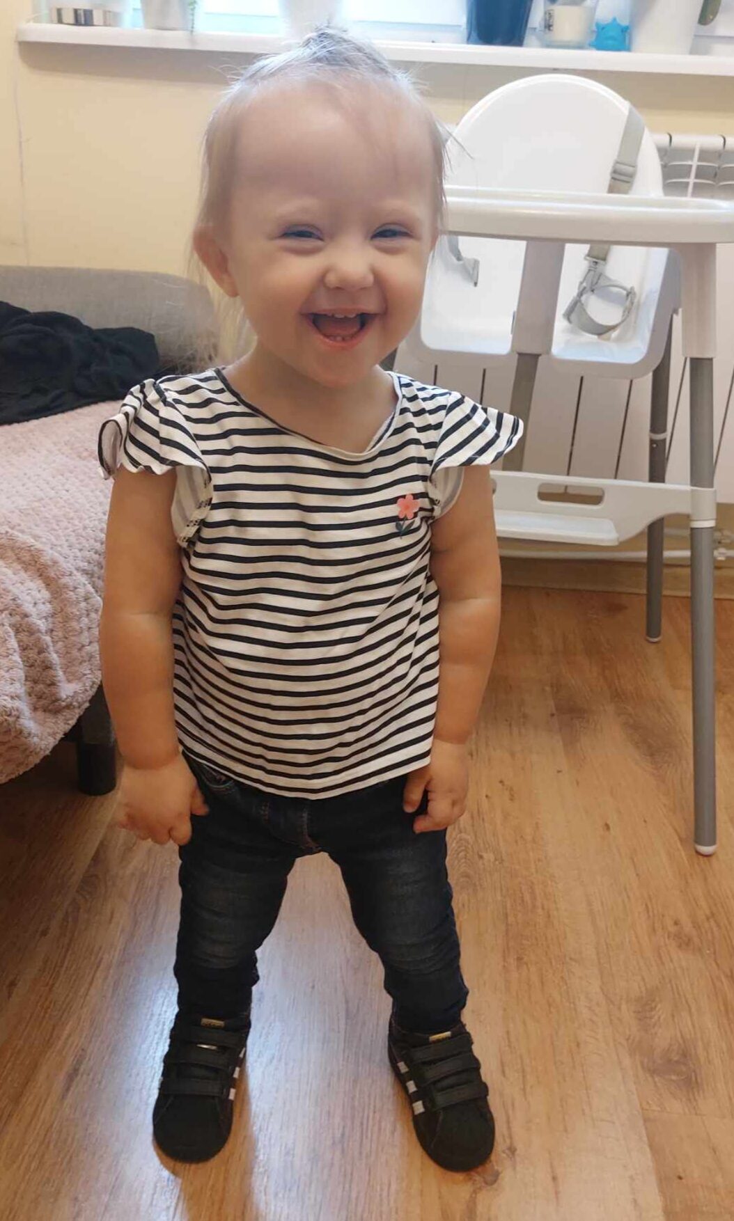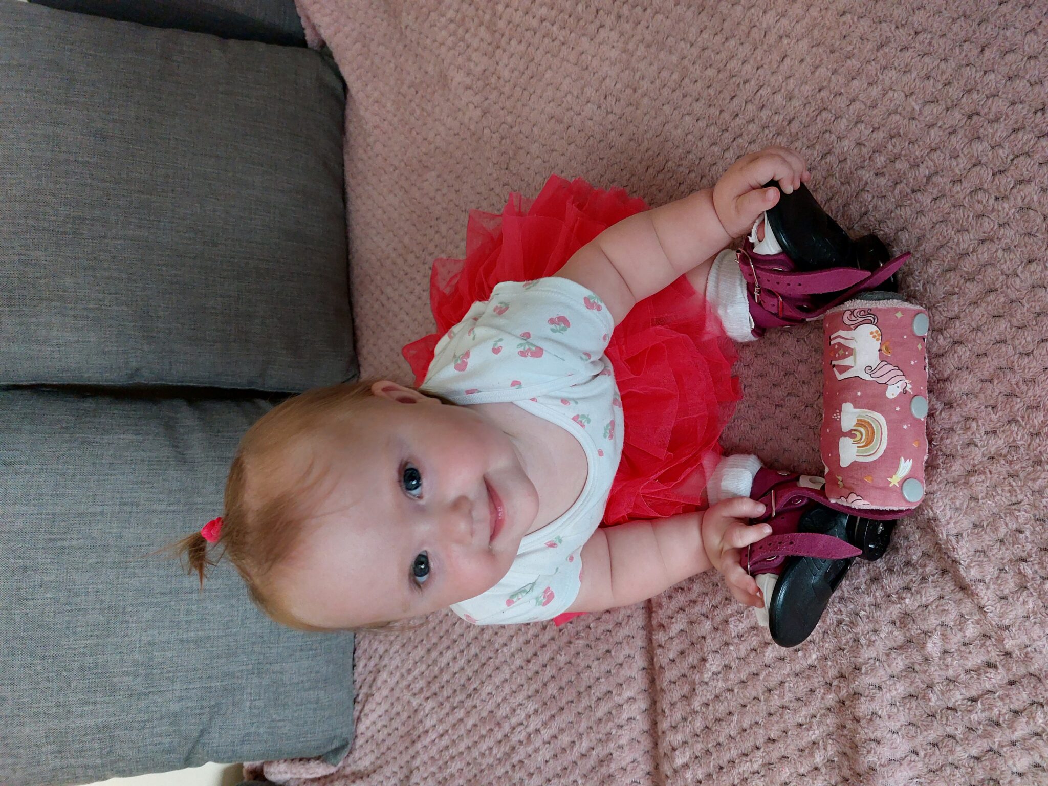 Obecnie Zuzia jest już po procesie zakładania opatrunków gipsowych oraz zabiegu tenotomii, na ten moment nieodzownym elementem jest zaopatrzenie ortopedyczne (obuwie, szyny derotacyjne, ortezy DAFO). Poza wadą rozwojową, nasza córka zmaga się także z zaburzeniami układu nerwowego, alergiami pokarmowymi i opóźnieniem rozwoju psychoruchowego.